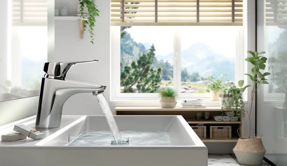 2. Рычажная ручка позволяет регулировать температуру и поток воды одним плавным движением — нет необходимости регулировать разные ручки отдельно. Идеально подходит для быстрой утренней стирки или поздней уборки. Аэратор в изливе смешивает пузырьки воздуха, создавая мягкую струю воды без брызг. Он сохраняет раковину сухой, уменьшая беспорядок во время использования (например, мытья лица, чистки зубов).