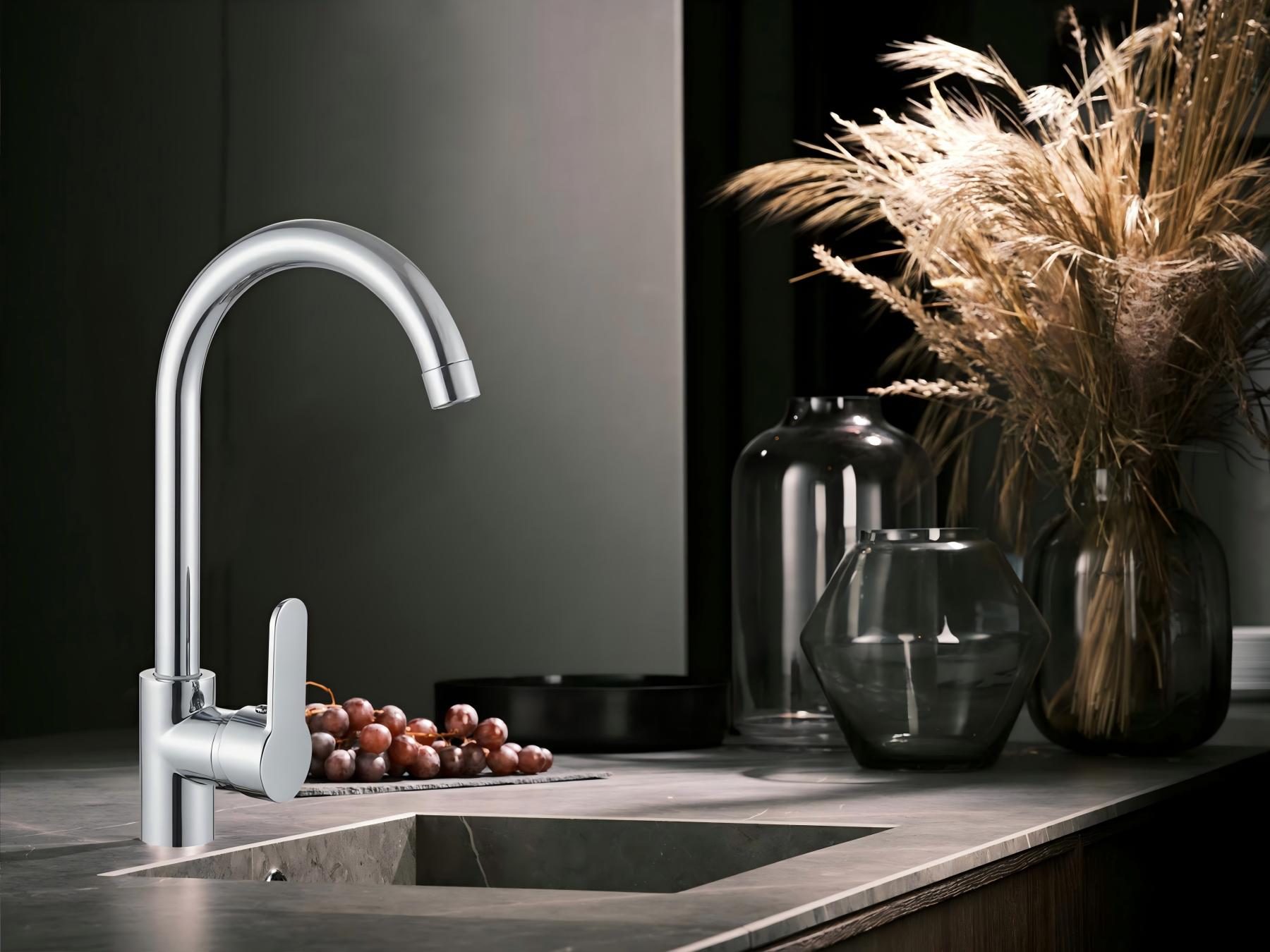 2. Излив с высоким изгибом обеспечивает вращение на 360°, охватывая всю площадь раковины.